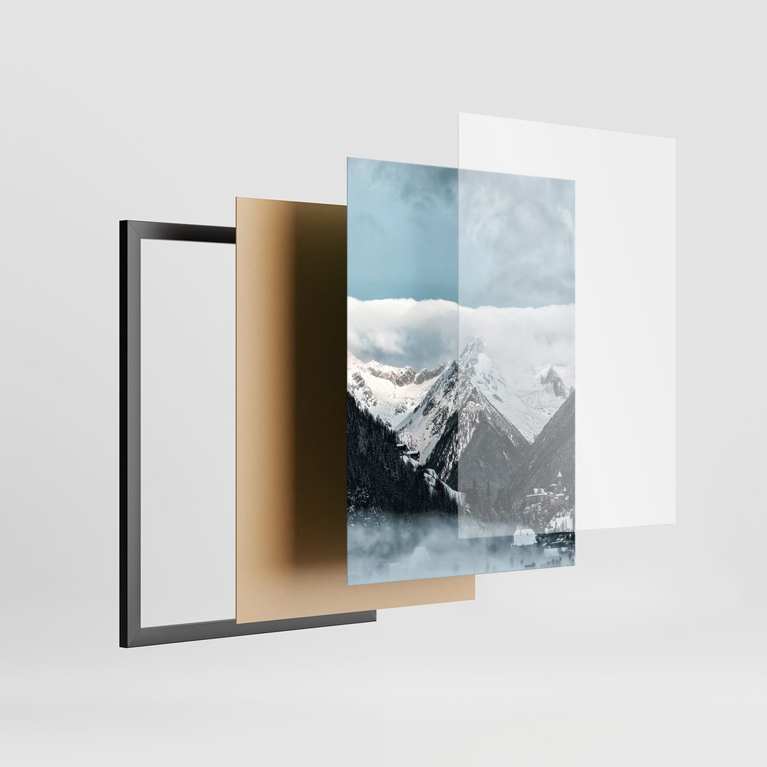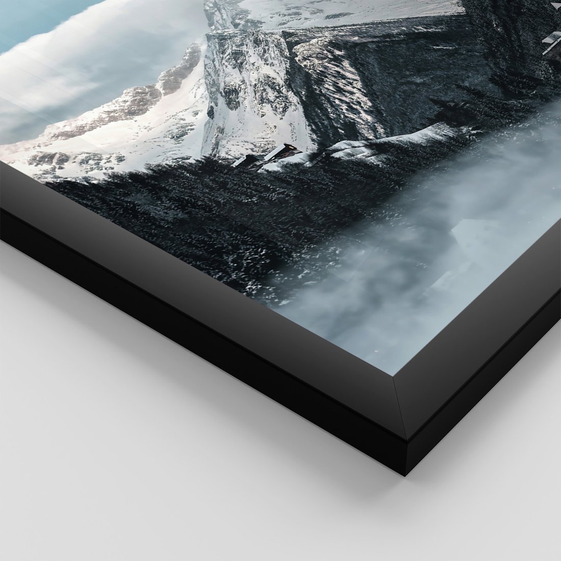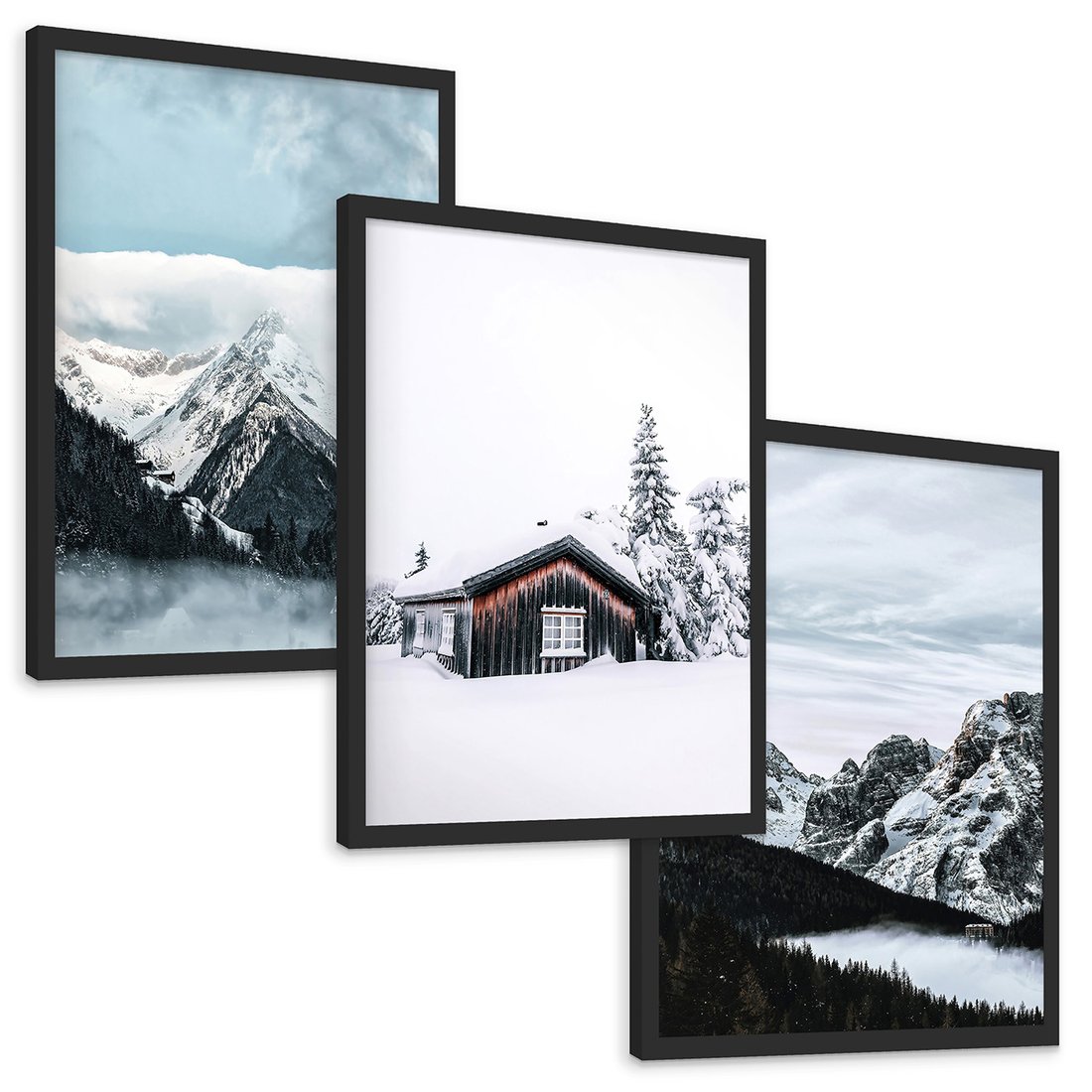 Zestaw obrazy w ramie, plakaty - zima, śnieg, góry - rama czarna