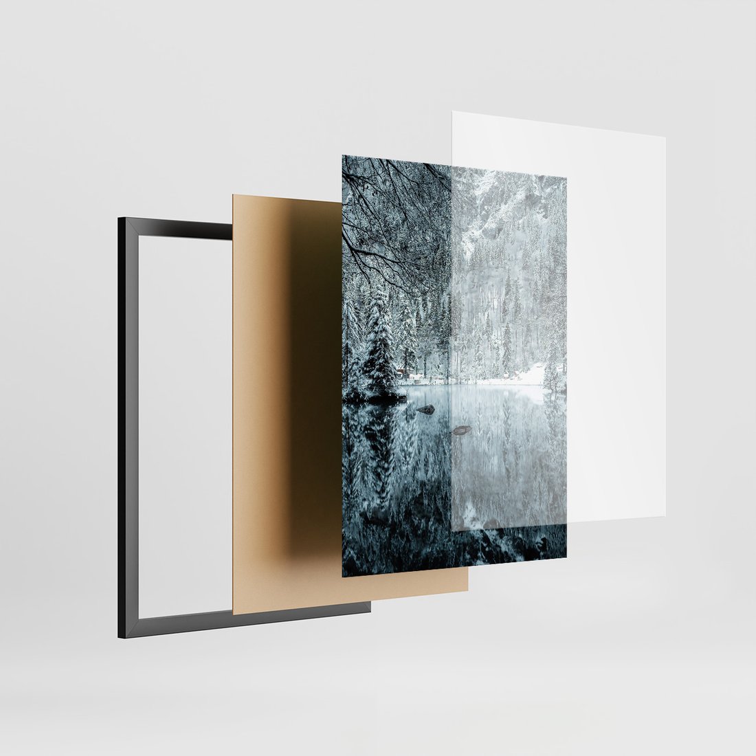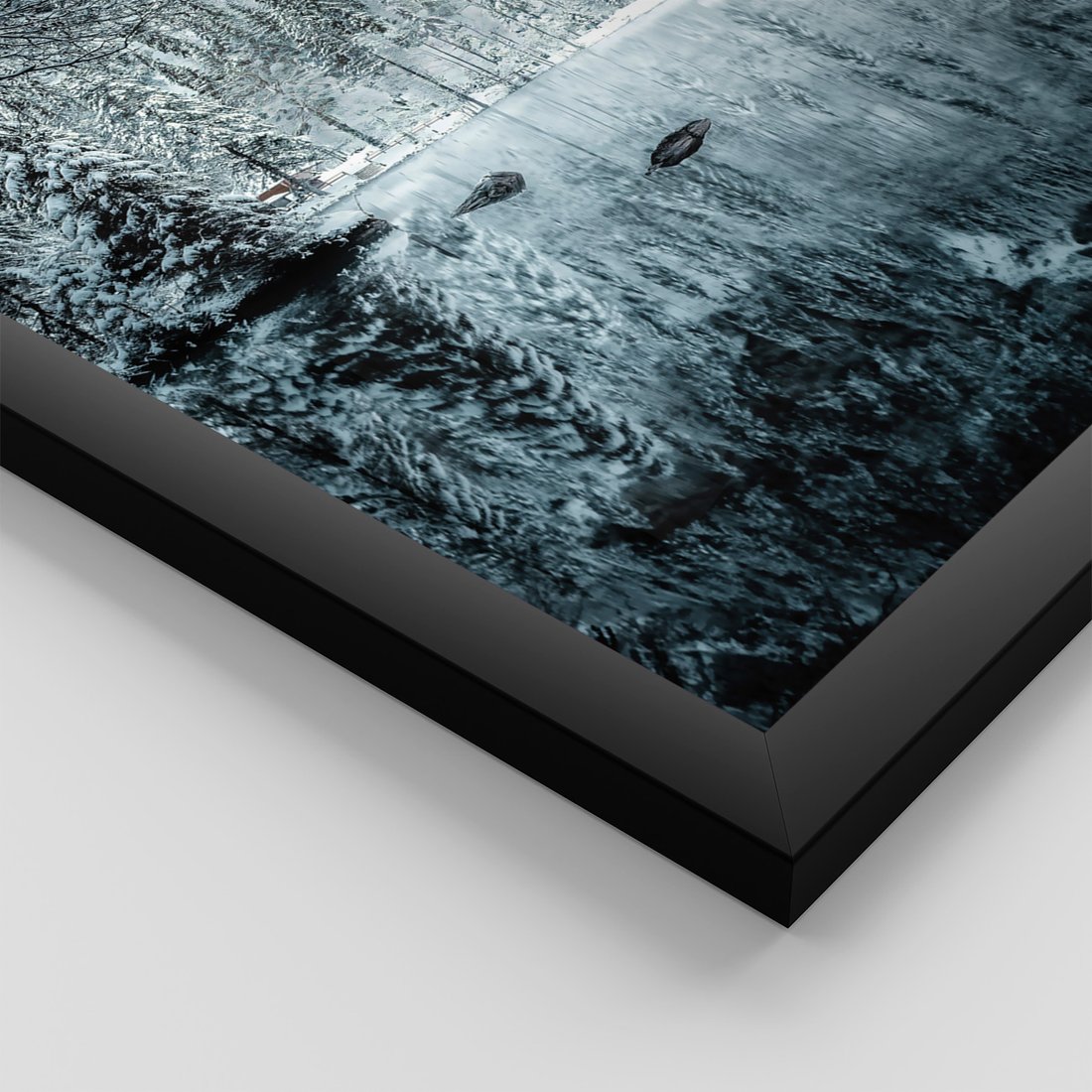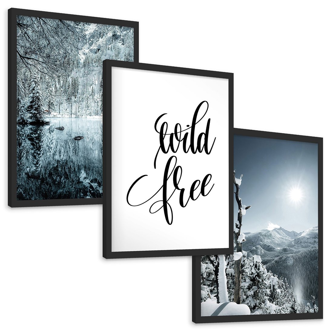 Zestaw obrazy w ramie, plakaty - zima, śnieg, góry - rama czarna