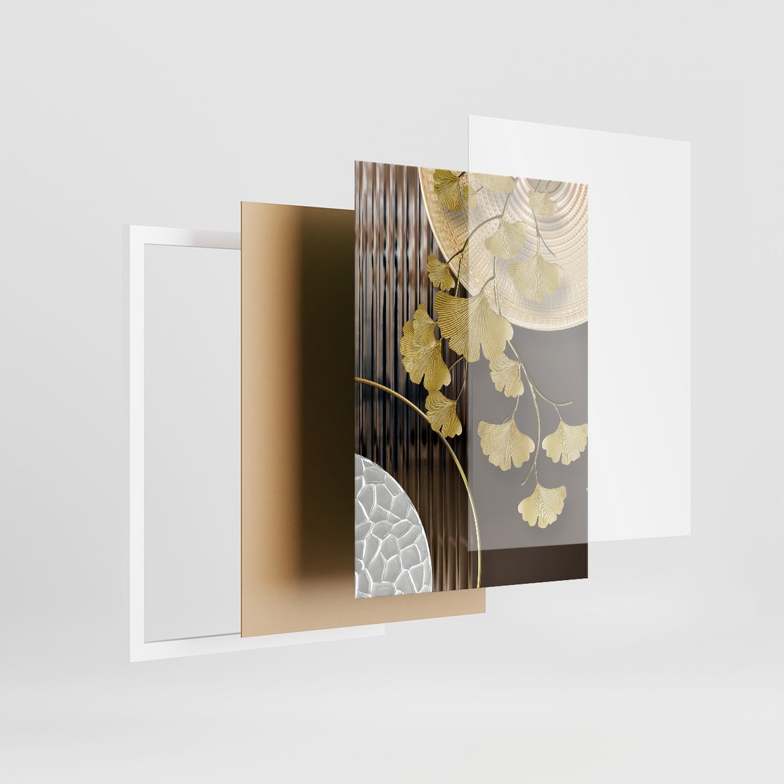 - Zestaw obrazy w ramie, plakaty - złoty, liście, abstrakcja