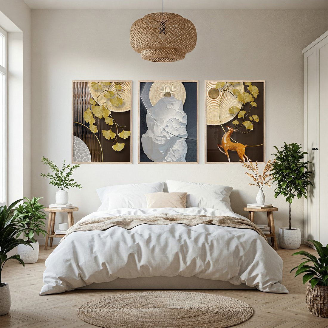 Przenieś piękno sztuki do swojego domu dzięki naszemu starannie skomponowanemu produktowi zestaw obrazów złoty, liście, abstrakcja. Każdy plakat, oprawiony w elegancką ramę, łączy w sobie estetykę i trwałość. Uniwersalne wzornictwo sprawia, że te dekoracje ścienne doskonale komponują się z różnymi stylami wnętrz, od nowoczesnych po klasyczne. Łatwość montażu pozwala na szybką i bezproblemową metamorfozę Twojej przestrzeni. To również idealny pomysł na wyszukany prezent, który z pewnością zachwyci.