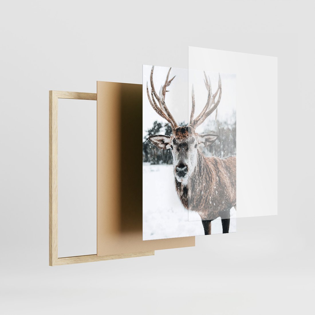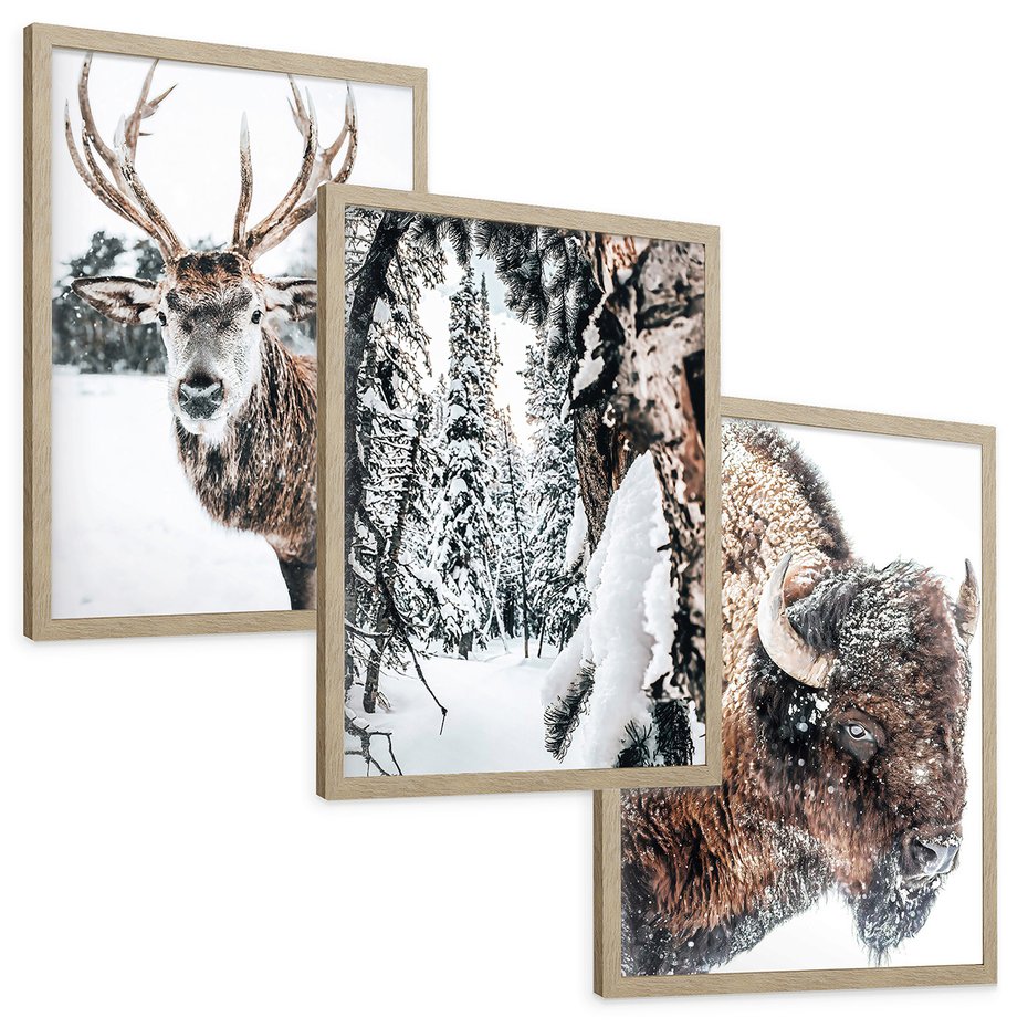 Zestaw obrazy w ramie, plakaty - zwierzęta, zima, śnieg - rama drewno